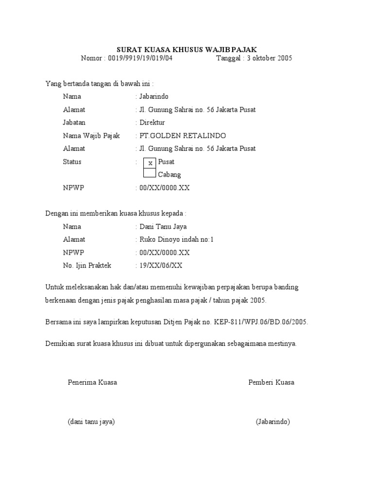 Contoh Surat Kuasa Pelaporan Pajak Pribadi Suratmenyurat Net - Cute766