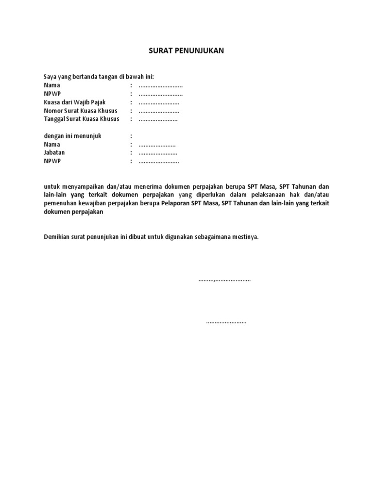 DOC) Contoh Surat Penunjukan Pelaporan Pajak Word | Herfian Syahputra - Academia.edu