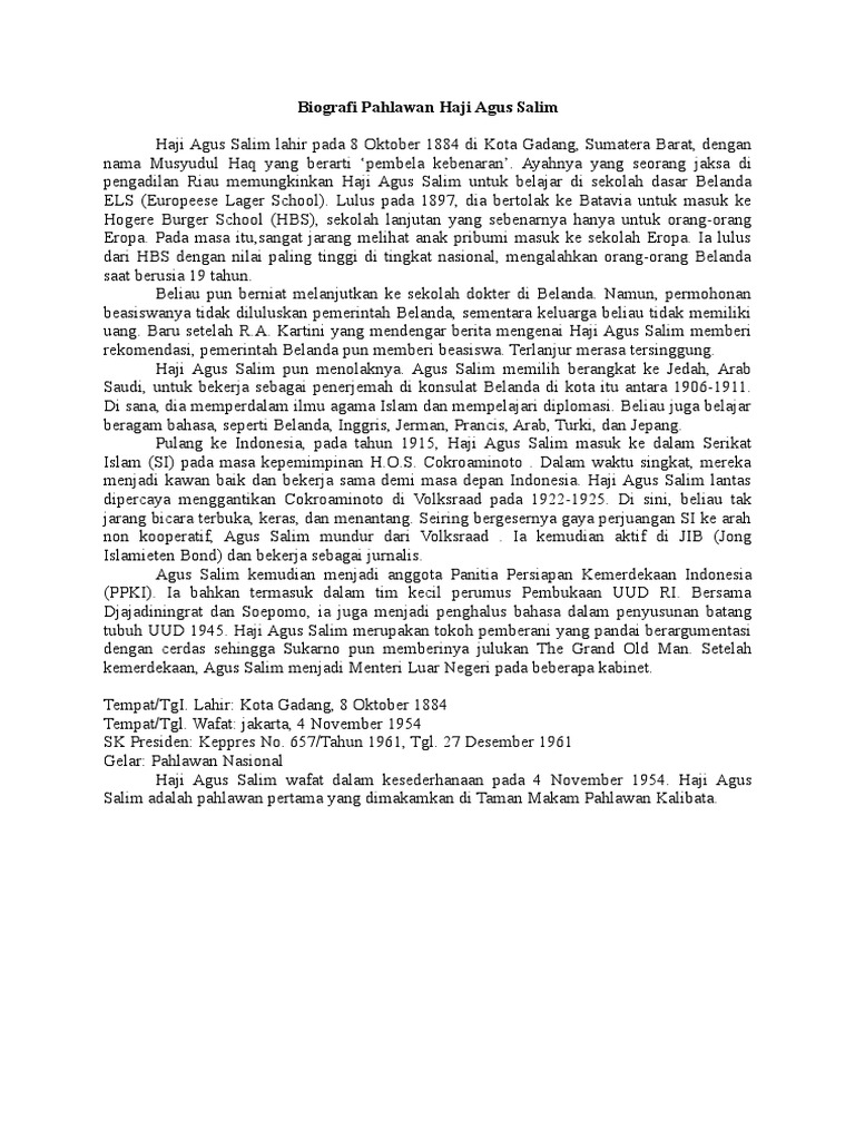 Biografi Pahlawan Haji Agus Salim