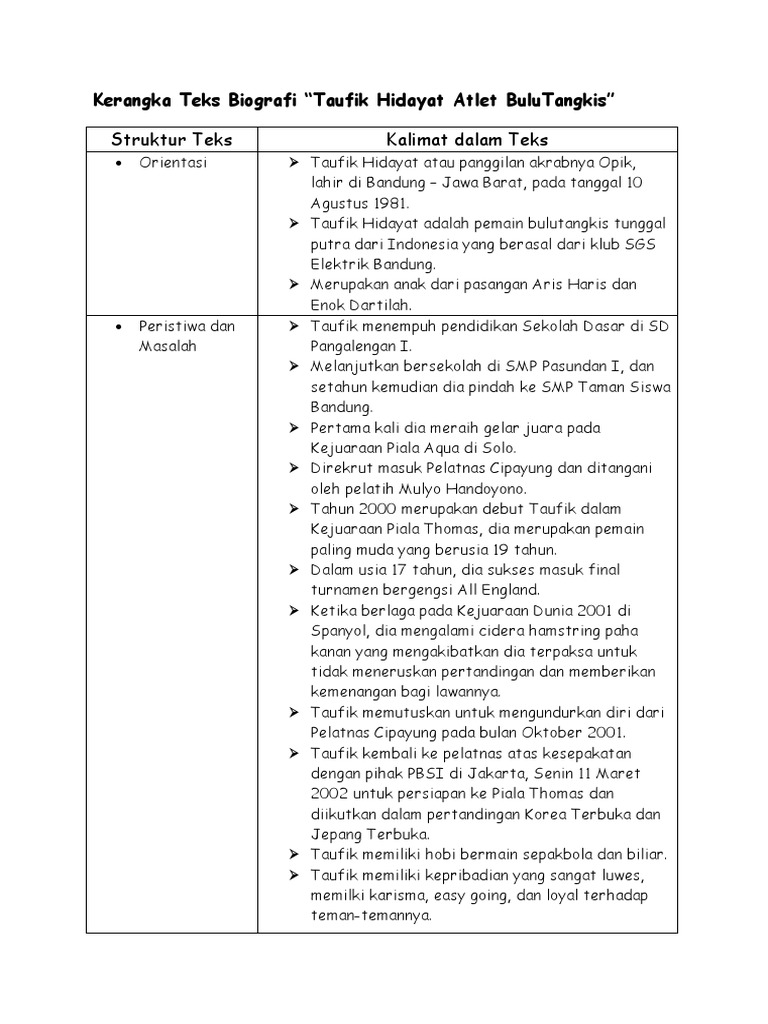 Marks: 2 Cermati penggalan biografi di bawah ini. Bagi Taufik Hidayat, tidak ada pilihan lain - Brainly.co.id