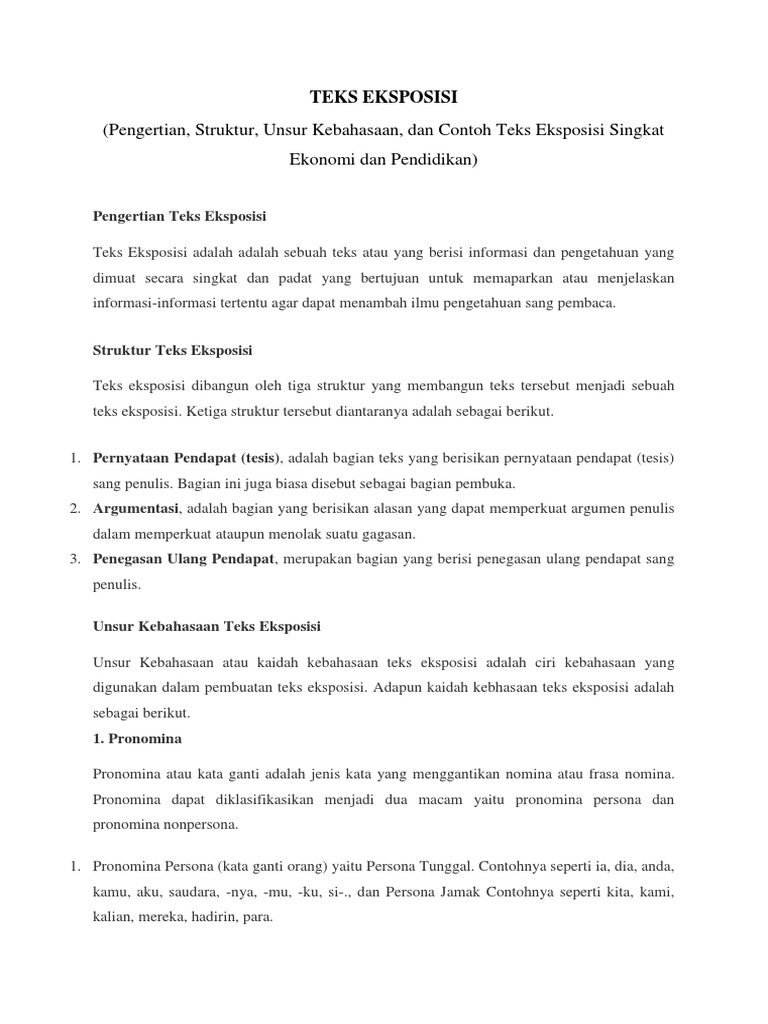 PDF) Contoh Teks Eksposisi Kaidah Jenis Unsur Ciri dan Struktur Kebahasaan-masbidin.net | masbidin dotnet - Academia.edu