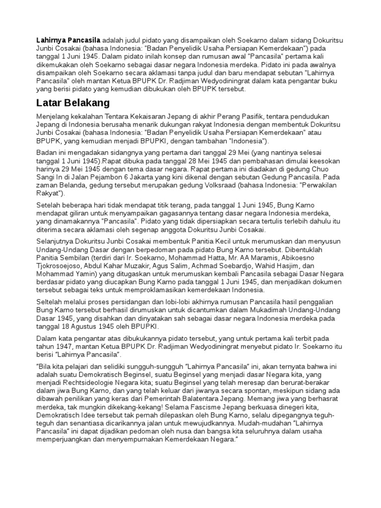 DOC) Pidato Bung Karno 1 Juni 1945 [ Lahirnya Pancasila | zidni muhammad - Academia.edu
