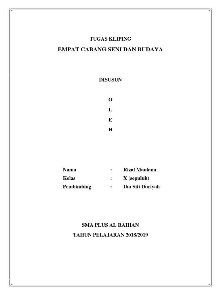 Contoh Cover Kliping Seni Budaya - Kumpulan Contoh Makalah Doc Lengkap