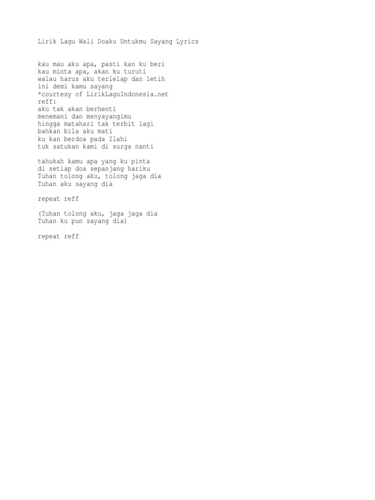 Lirik lagu Wali band - Doaku untukmu sayang - Wattpad