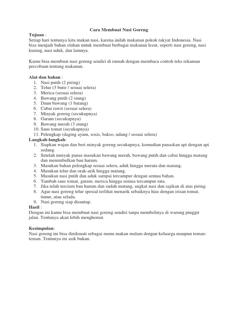 Contoh Teks Prosedur Kompleks Membuat Makanan Nasi Goreng - Dapatkan Contoh