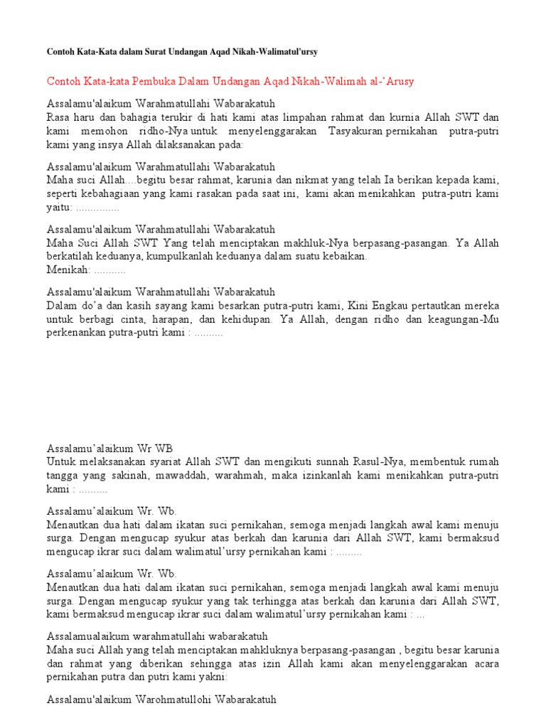 Contoh Undangan Akad Nikah Doc Terbaru Download Template Undangan Walimatul Ursy Ms Word | Undangan, Contoh undangan pernikahan, Undangan perkawinan
