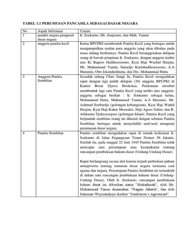 Tabel 1.1 Perumusan Pancasila sebagai Dasar Negara No … Tabel 1.1 Perumusan Pancasila sebagai Dasar Negara No Aspek Informasi Uraian 1. Pendiri Negara pengusul rumusan dasar negara - [PDF Document]