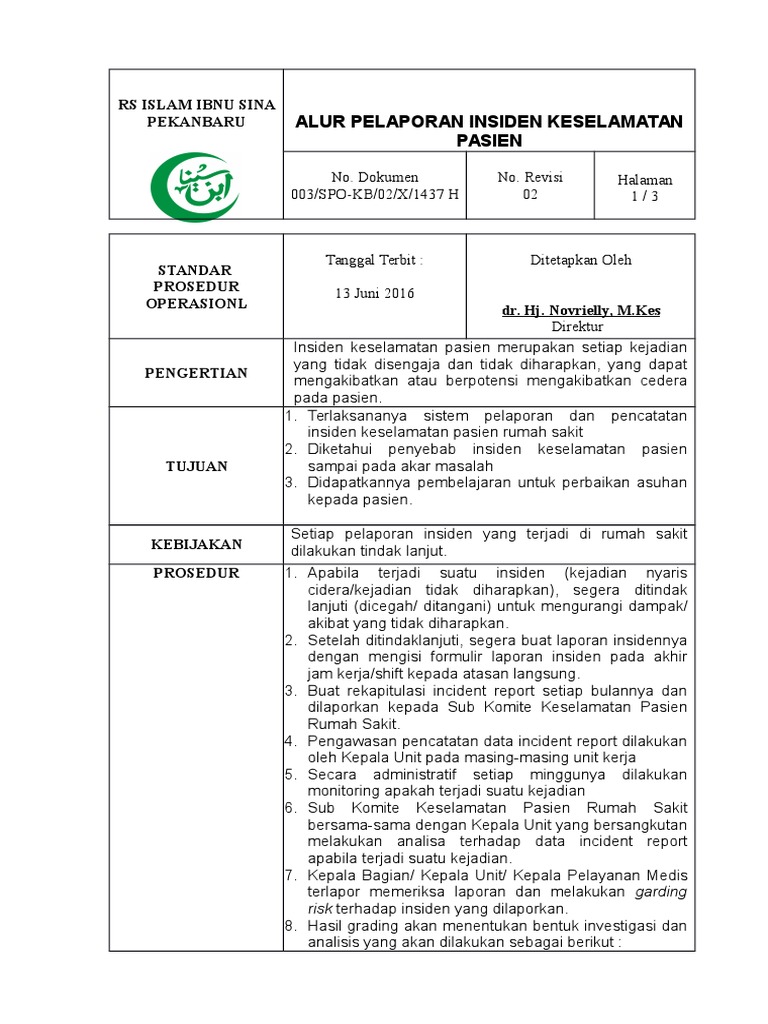 Pedoman Pelaporan Insiden Keselamatan Pasien (IKP) (Patient Safety In