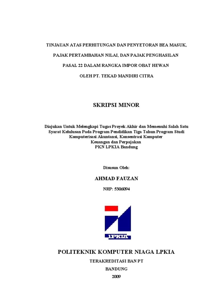 DOC) ANALISIS PENERAPAN PERHITUNGAN PAJAK PERTAMBAHAN NILAI (PPN) DAN PAJAK PENGHASILAN (PPH) PASAL 22 TERUTANG SERTA PEMBAYARAN DAN PELAPORANNYA KE KAS NEGARA PADA CV. JAYA TAMBANG MAS PALEMBANG | Dessy Nataliana - Academia.edu