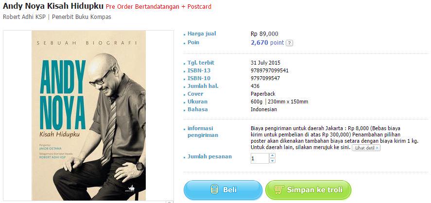 Penerbit Buku Kompas : “Pre Order #Biografi ANDY NOYA - Kisah Hidupku Harga Rp. 89.000 + onkir Bonus tanda tangan @KickAndyShow Silahkan DM http://t.co/y0Wnau0OiU”