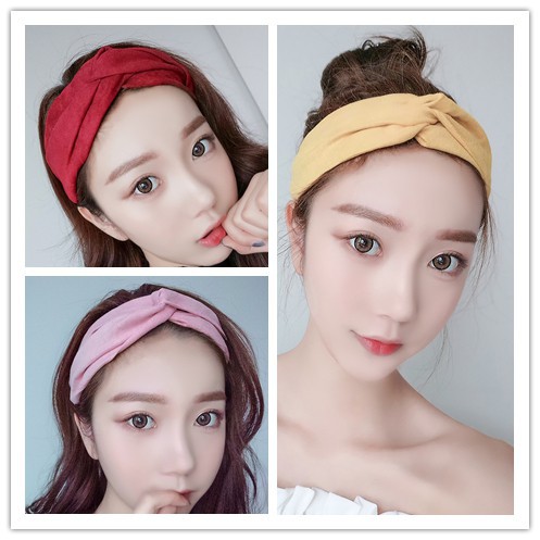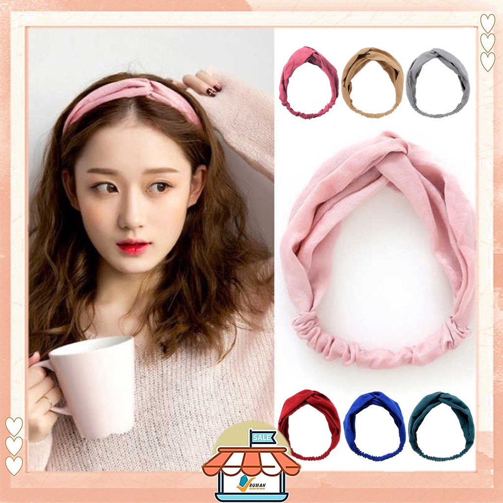 Bando Wanita Model Pita Simpul Silang Motif warna Polos Gaya Korea Tokopelanginicer | Lazada Indonesia