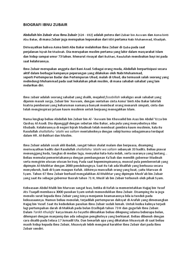 Abdullah bin Zubair bin Al-Awwam | Mari baca