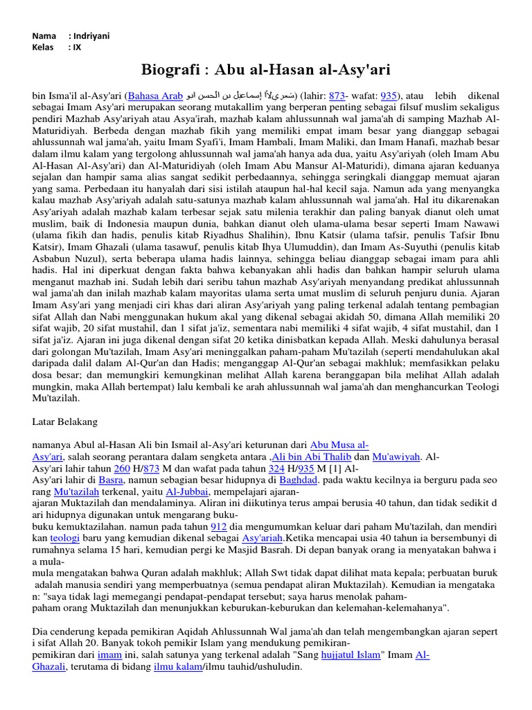 DOC) Sejarah singkat abu hasan al asy’ari | Ahmad B Burhanuddin - Academia.edu