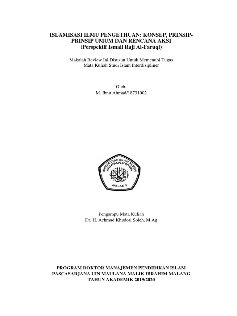 PDF) KONSEP ISLAMISASI SAINS MENURUT ISMAIL RAJI AL-FARUQI | Muhajir Muhajir - Academia.edu