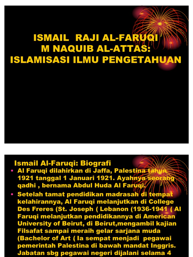 STUDI KOMPARATIF PEMIKIRAN ISMAIL RAJI AL-FARUQI DAN SYED MUHAMMAD NAQUIB AL-ATTAS IRMA SURYANI SIREGAR LINA MAYASARI SIREGAR A