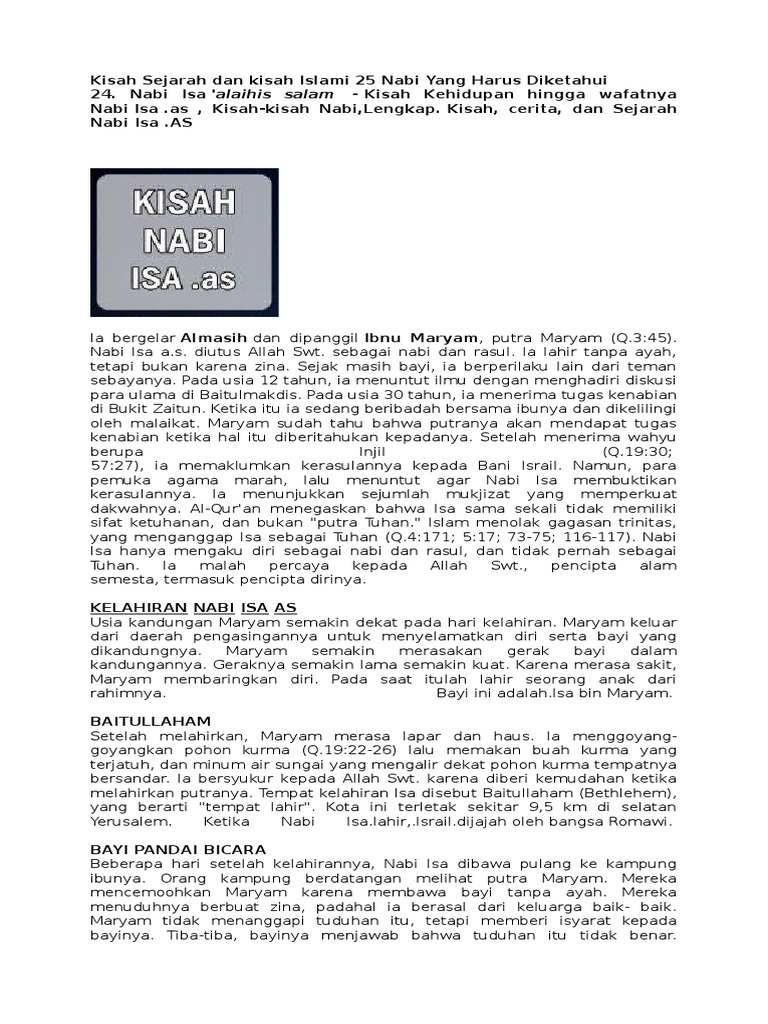 DOC) KISAH NABI ISA AS | Amalia Mumtaza - Academia.edu