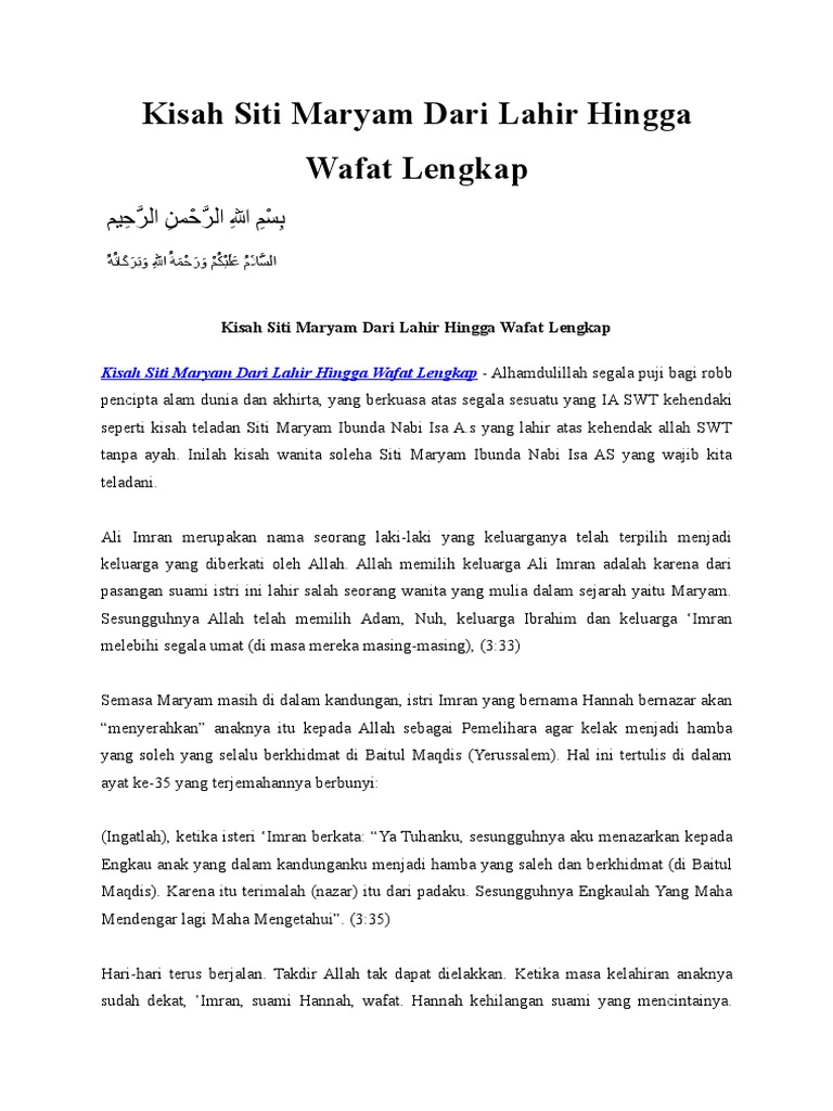 Kisah Siti Maryam Dari Lahir Hingga Wafat Lengkap.doc