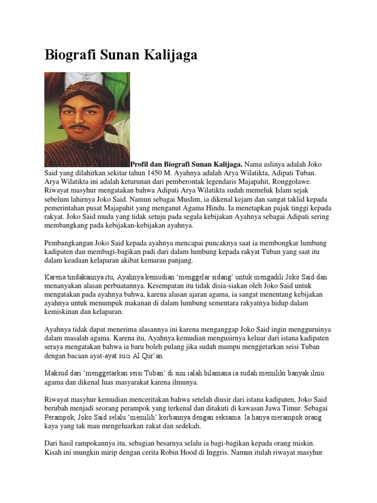 biografi sunan kalijaga dalam bahasa inggris – Info Biografi