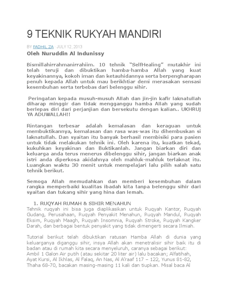 9 Teknik Rukyah Mandiri