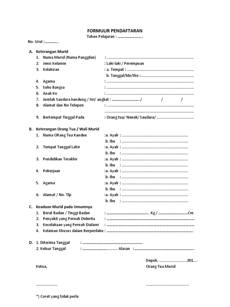 Contoh Formulir Pendaftaran Siswa PAUD TK KB TPA DOC - PAUD JATENG