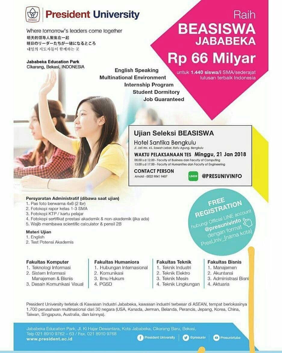 President University on Twitter: “PRESIDENT UNIVERSITY GOES TO BENGKULU!! Hello future leaders! Are you ready to GET FULL SCHOLARSHIP to STUDY AT PRESIDENT UNIVERSITY?… https://t.co/Bycf4qVHcE”