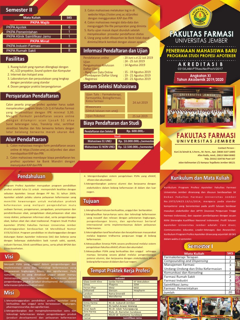 Fakultas Farmasi Universitas Jember - berikut brosur penerimaan profesi apoteker UNEJ 2015. lebih jelas silahkan lihat di http://farmasi.unej.ac.id/ terima kasih | Facebook