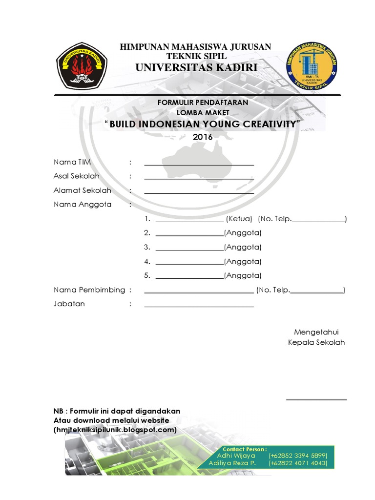 HMJ TEKNIK SIPIL: Pamflet Lomba Maket Universitas Kadiri 2016