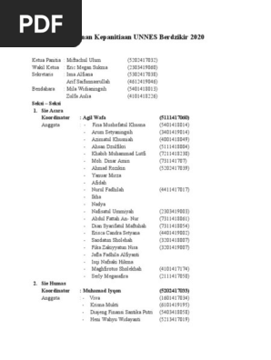 Susunan Kepanitiaan UNNES Berdzikir 2020: Seksi Seksi 1. Sie Acara Koordinator: Agil Wafa (5111417060)