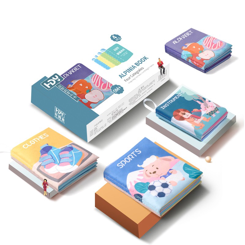 HDY Buku Kain Bayi Softbook Lembut Bantal Cerita Buku Dengan Kotak Hadiah Untuk Newborn Edukasi Awal Infant Baby Fabric Cloth Books with Gift Box Newborn English Early Learning Soft Fiber Book Children