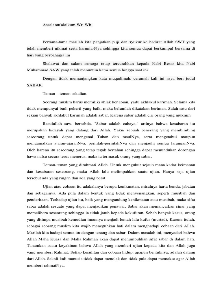 Contoh pidato agama islam tentang sabar