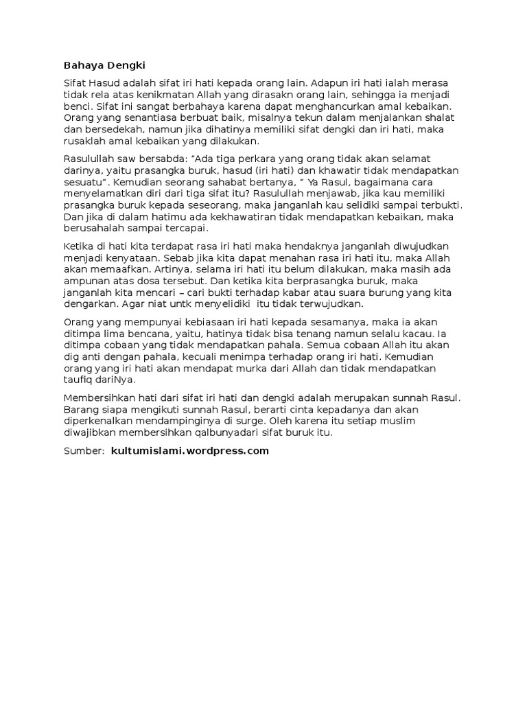 Ceramah Ramadhan 2015 Kultum Tarawih Kulaih Subuh Dan Kotbah Jumat 1 Bahaya Dengki