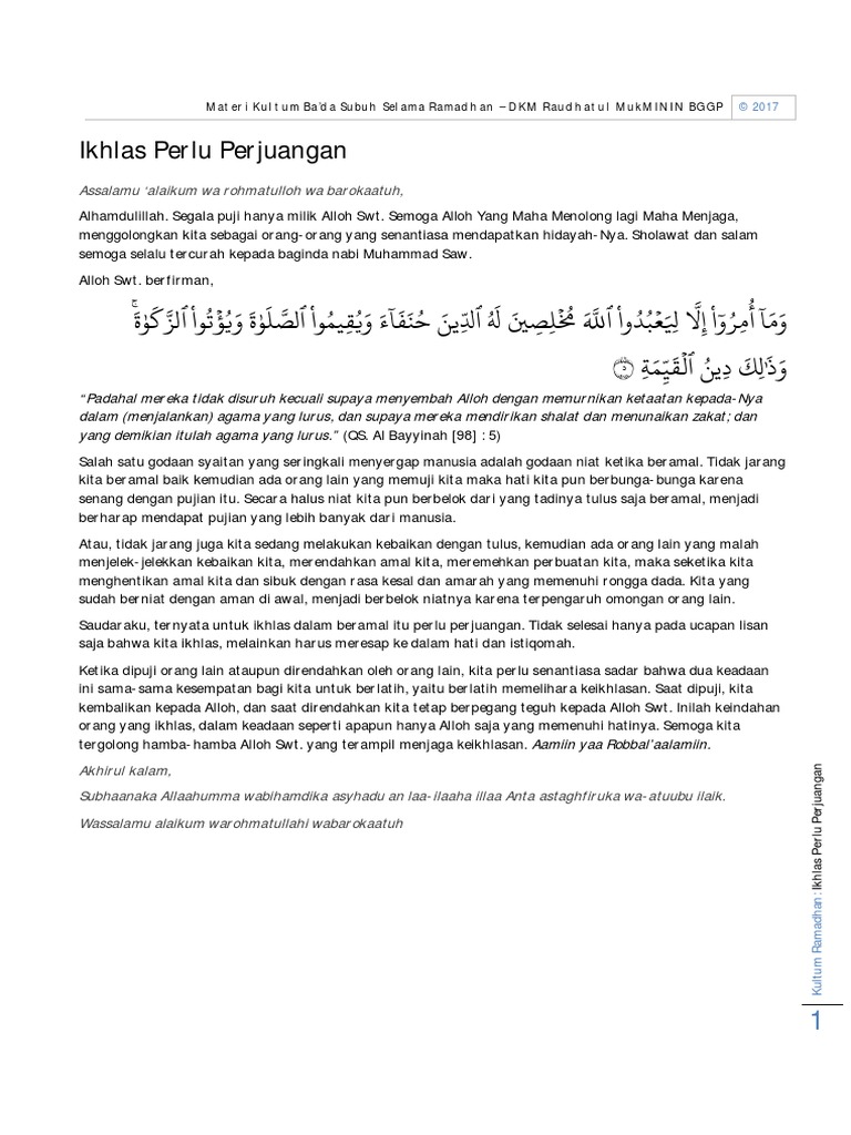 DOC) Materi kultum ikhlas | Predawn prod - Academia.edu