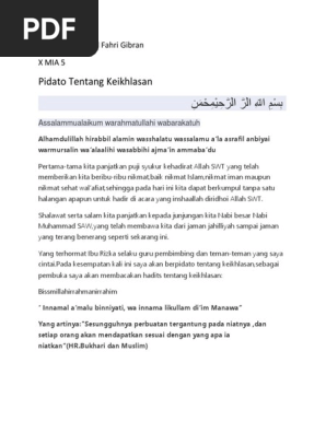 Pidato bahasa arab tentang ikhlas.id - Brainly.co.id