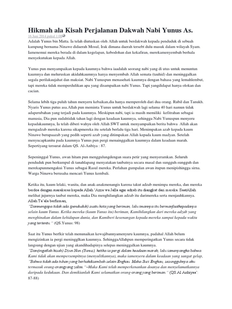 Sebutkan hikmah dari kisah Nabi Yunus yang dapat diteladani! - Brainly.co.id