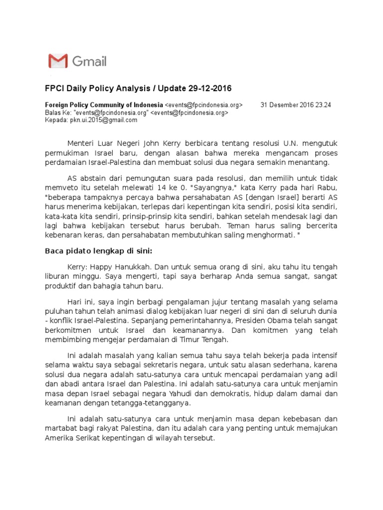 Pidato John Kerry Tentang Palestina Dan Israel