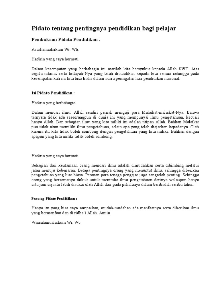 DOC) Contoh Teks Pidato Naskah Singkat Tema Pendidikan | Kang Taqwim - Academia.edu