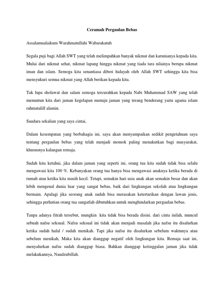 DOC) Teks Ceramah Agama Islam Tentang Pergaulan Bebas | bedjo fotocopy - Academia.edu