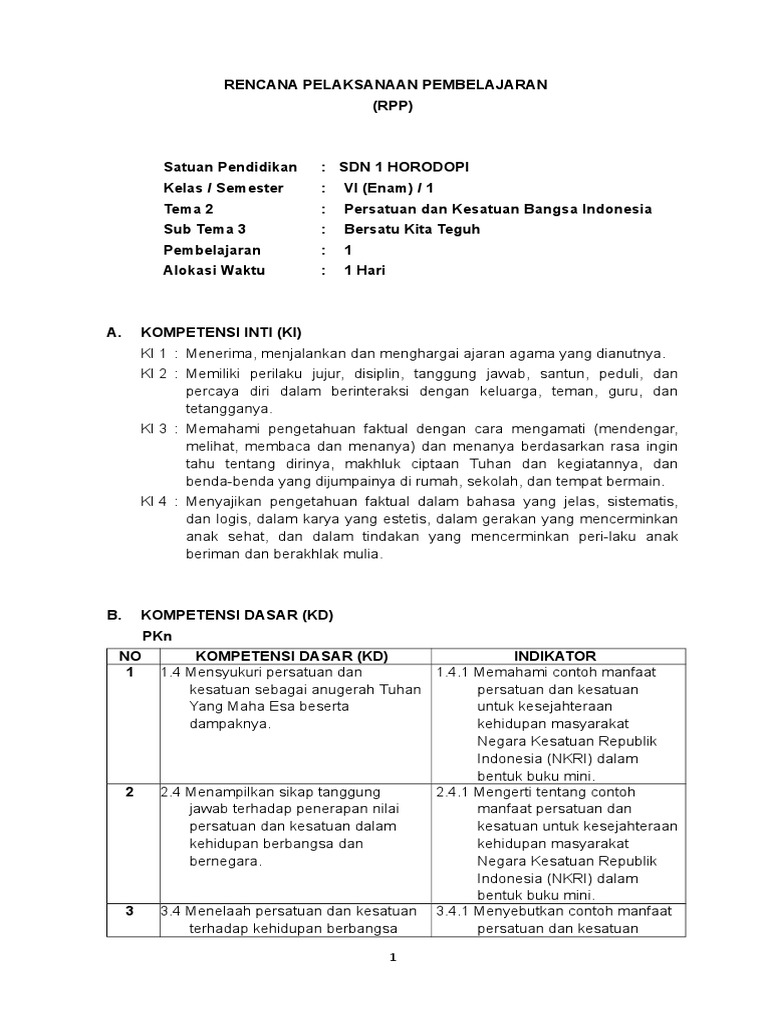 DOC) RPP Menanamkan semangat persatuan dan kesatuan dalam NKRI | YULIANA APRILI - Academia.edu