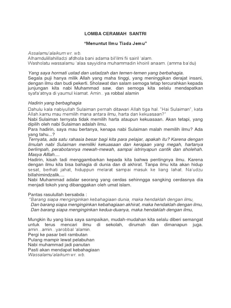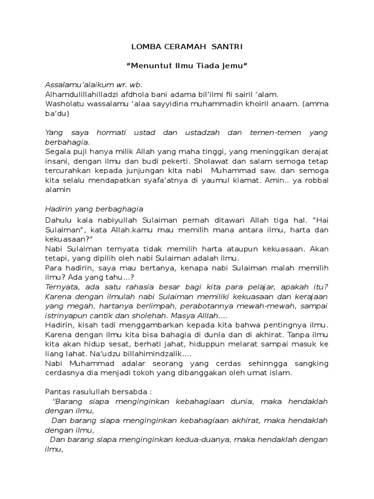 Pidato Santri Tentang Kemuliaan Ilmu, Guru dan Ulama – Laman 3 dari 3 – SANTRI MILENIAL
