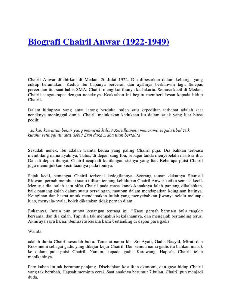 Biografi Chairil Anwar Dalam Bahasa Inggris