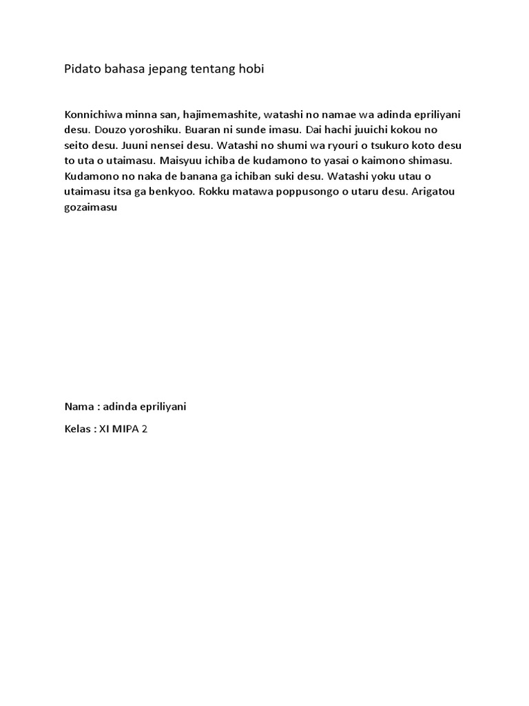 Contoh Pidato Bahasa Jepang Tentang Hobi