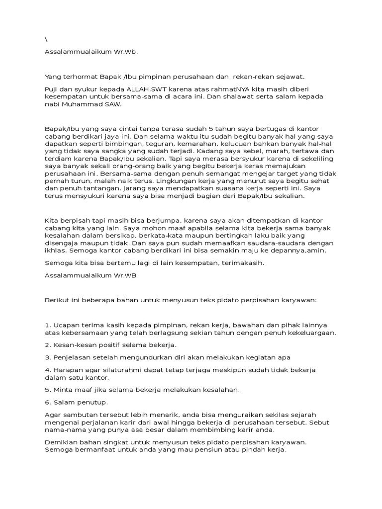 Contoh Pidato Perpisahan Di Kantor