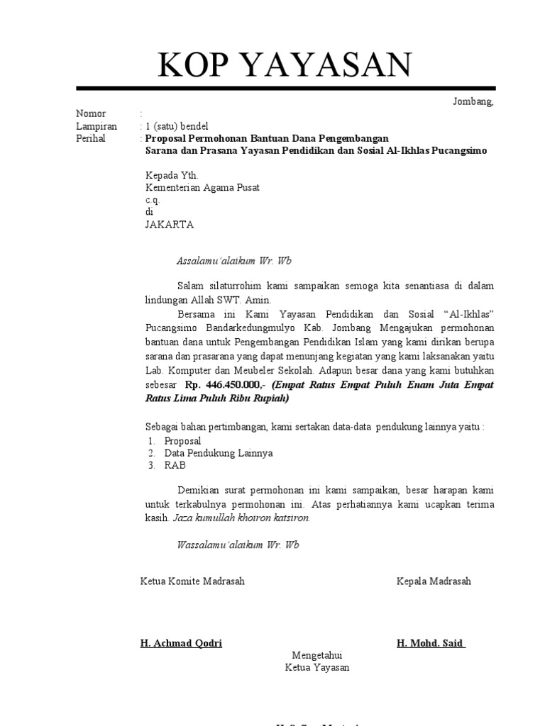 Contoh Proposal Pengajuan Barang | Blog Pendidikan