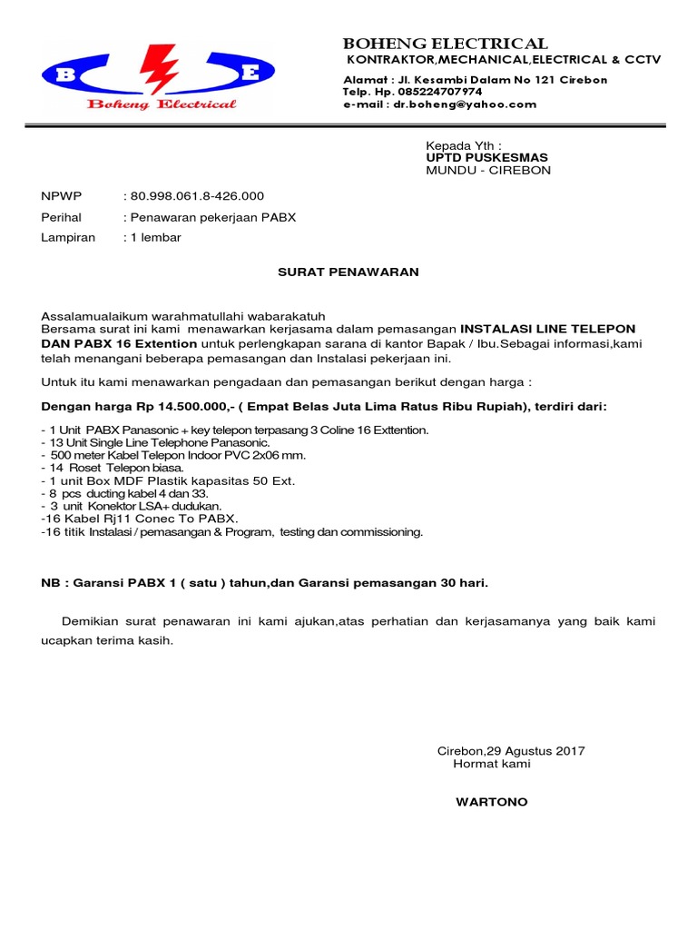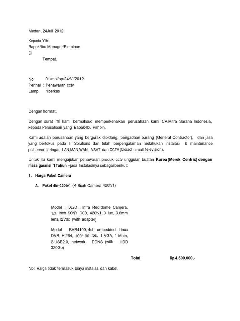 Contoh Surat Penawaran Jasa Pemasangan Cctv - Contoh Seputar Surat