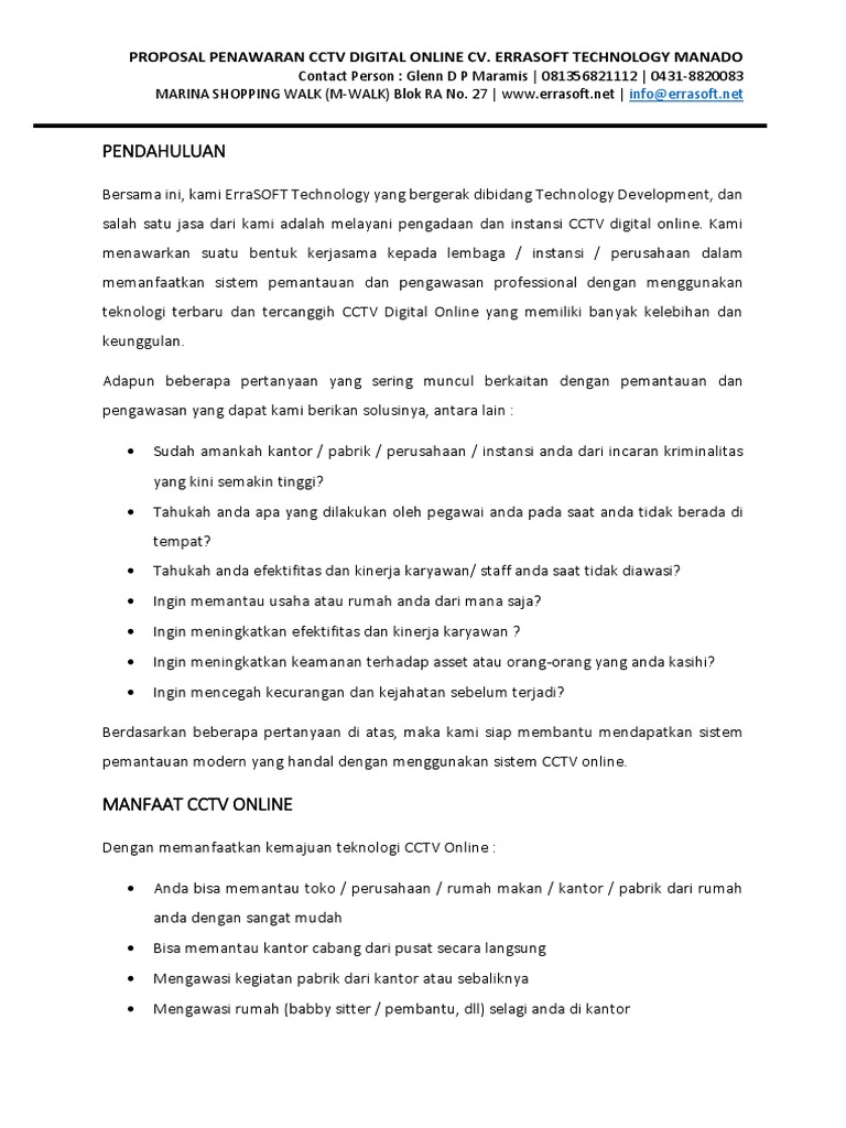Perihal : Proposal Pengadaan & Perawatan Security Sytem Live CCTV Online - PDF Download Gratis