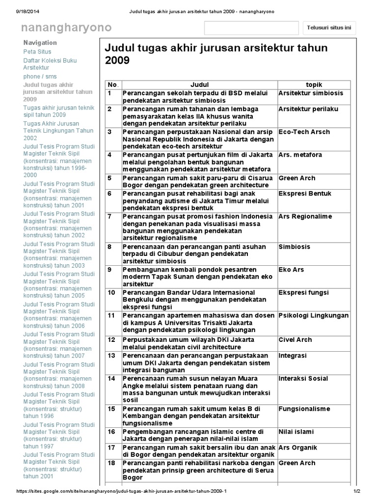 Judul tugas akhir jurusan arsitektur tahun 2009 - nanangharyono.pdf