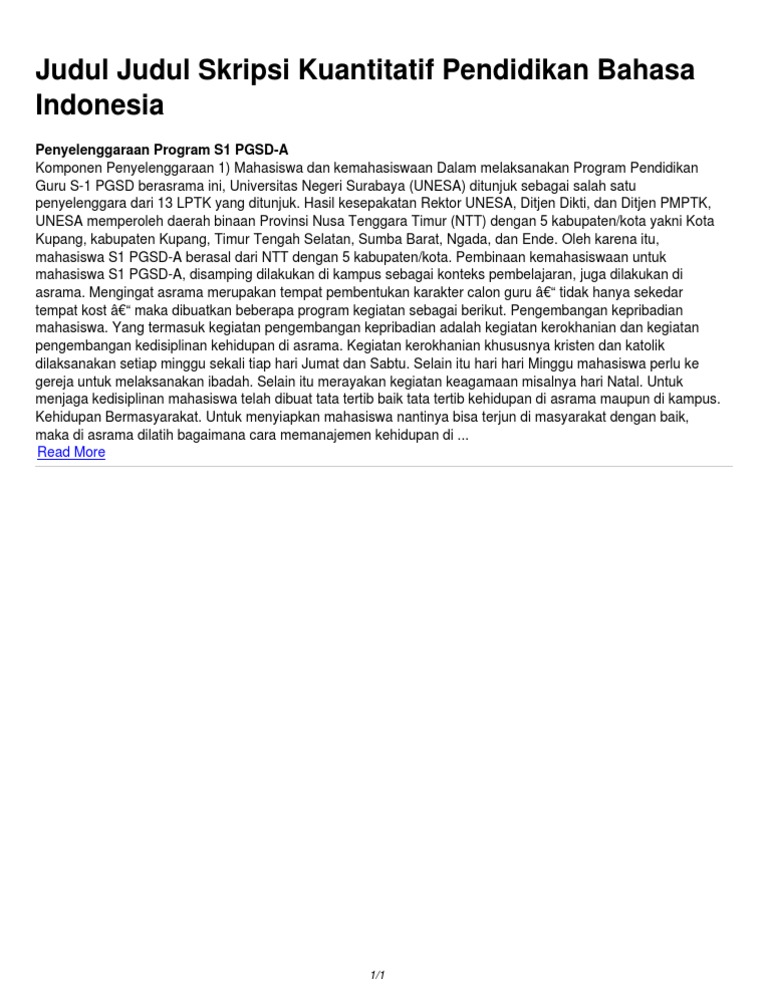 Judul Judul Skripsi Kuantitatif Pendidikan Bahasa Indonesia