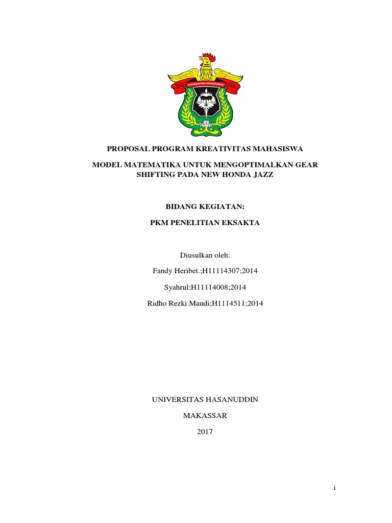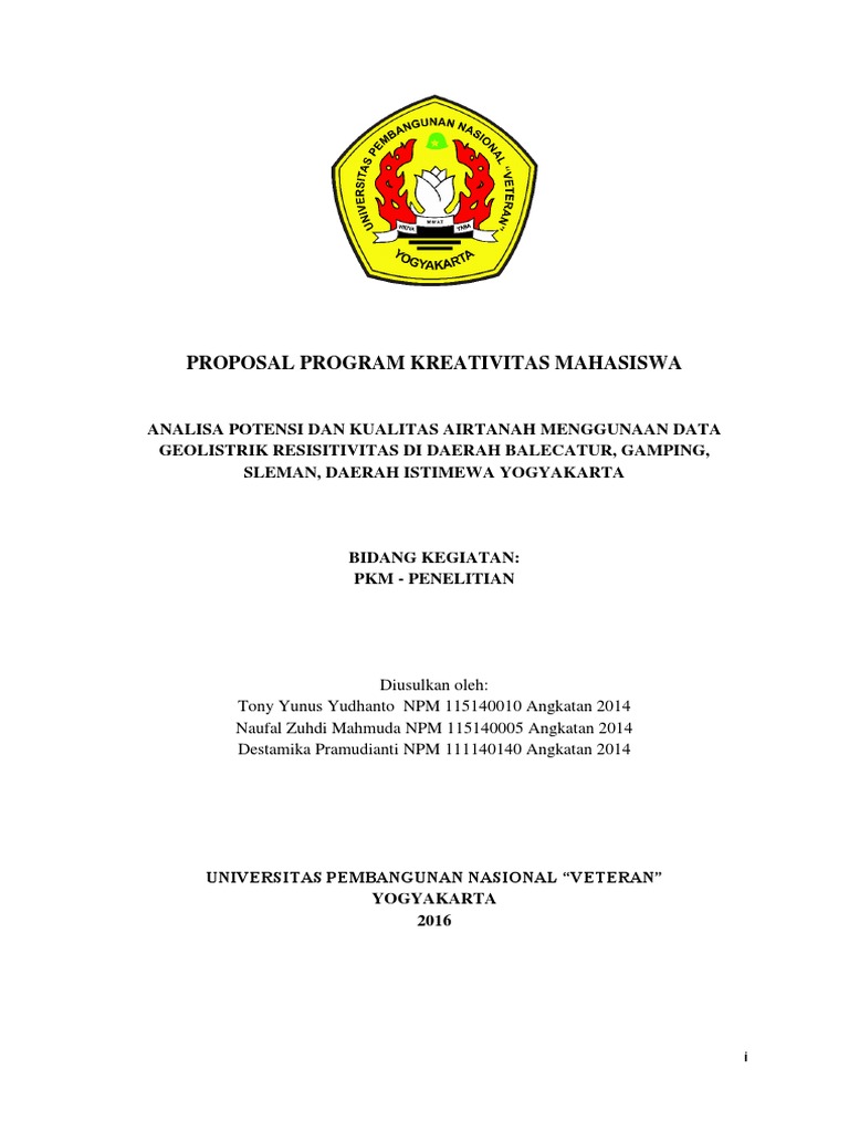 PDF) CONTOH PROPOSAL PROGRAM KREATIVITAS MAHASISWA JUDUL PROGRAM