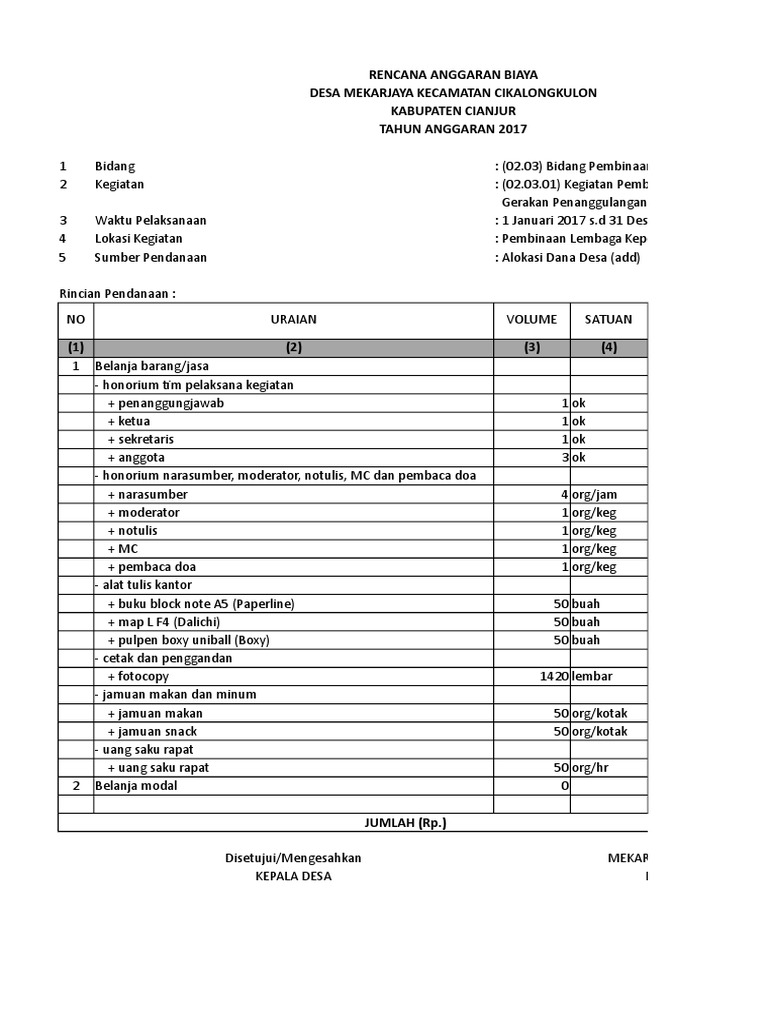 Contoh RAB Peralatan Olahraga Karang Taruna - Tribun Desa