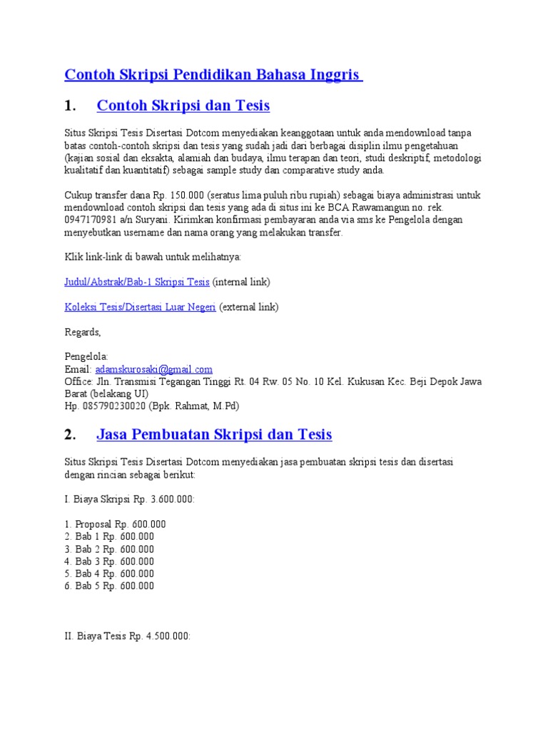 Contoh Tesis Bahasa Inggris | Contoh Soal Dan Materi Pelajaran 8
